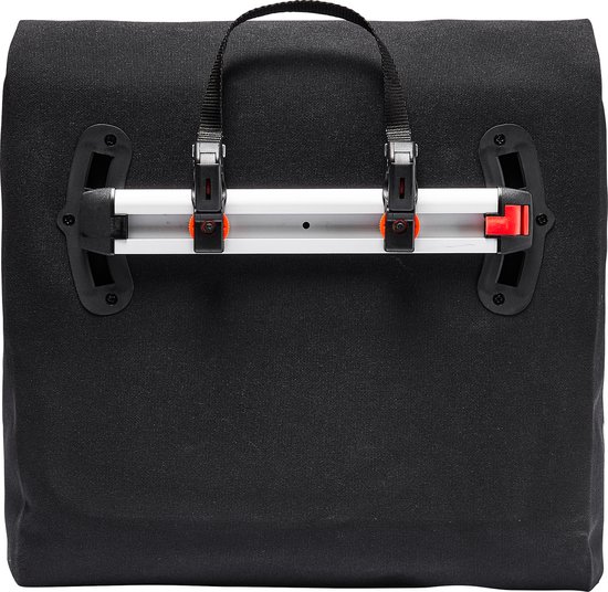 bevestigd en verwijderd. Met een klein beugelslot (bijv. VAUDE TSA Combination Lock II, niet bij de levering inbegrepen) kan de fietstas rechtstreeks